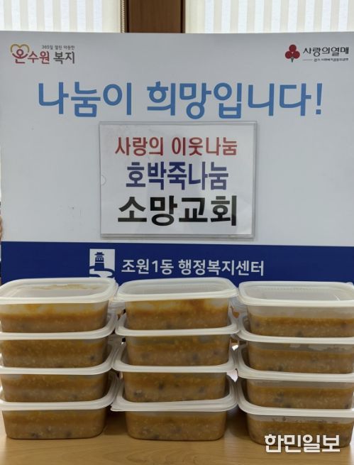 한민일보 서울포커스 진광성 기자 | 수원시 장안구 조원1동 지역사회보장협의체와 2025년 7월 업무협약을 맺은 소망교회가 지난 14일, 조원1동 관내 취약계층 20명을 위해 호박죽을 지원했다.