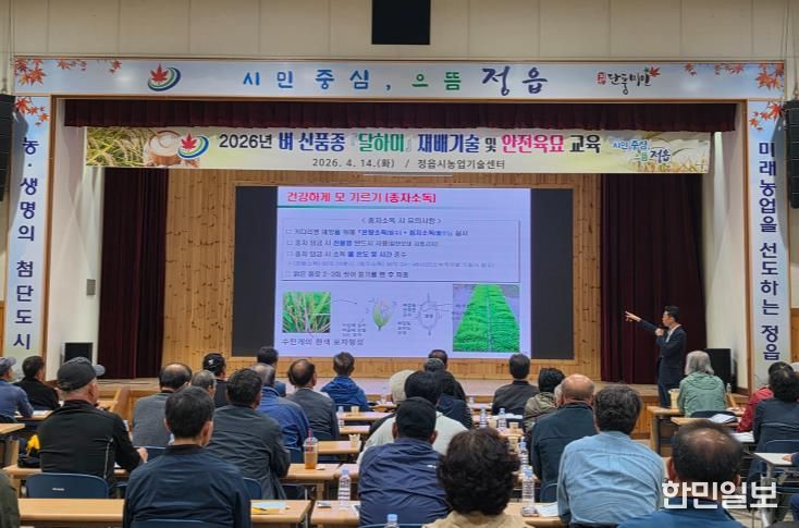 한민일보 서울포커스 김용택 기자 | 정읍시가 지난 14일 지역 농업인 100여 명을 대상으로 벼 신품종 ‘달하미’ 맞춤형 재배 기술 교육을 실시하며 고품질 쌀 생산 기반 확충에 나섰다.