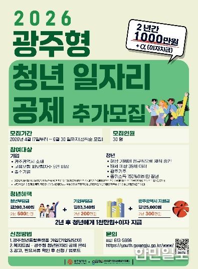 신청은 참여를 희망하는 기업이 청년 신청서 등을 포함해 ‘광주청년통합플랫폼(youth.gwangju.go.kr)’으로 접수하면 된다. 광주시는 소득·기업 요건 심사를 거쳐 대상자를 선정해 결과를 개별 통보할 예정이다.