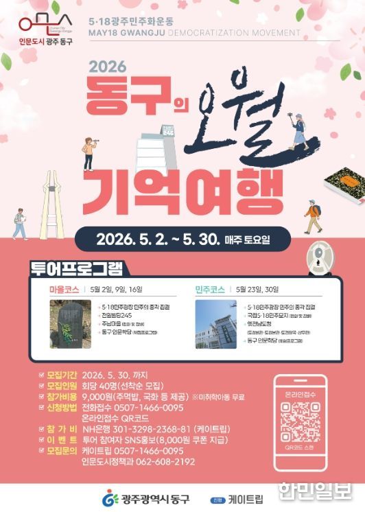 한민일보 서울포커스 임경복 기자 | 광주 동구는 제46주년 5·18민주화운동을 기념해 5월 한 달 동안 기념 투어 프로그램인 ‘동구의 오월 기억여행’을 운영한다고 밝혔다.