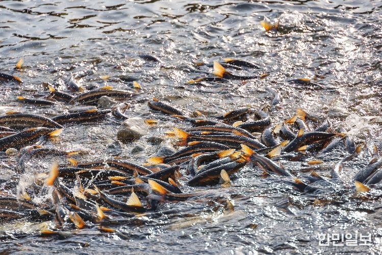 한민일보 서울포커스 진광성 기자 | 양양군의 젖줄인 남대천이 봄의 전령사 ‘황어’ 떼로 가득 찼다. 양양군은 최근 남대천 하구부터 상류 여울까지 산란을 위해 거슬러 올라온 황어들이 새까맣게 무리를 지으며 장관을 이루고 있다고 밝혔다.