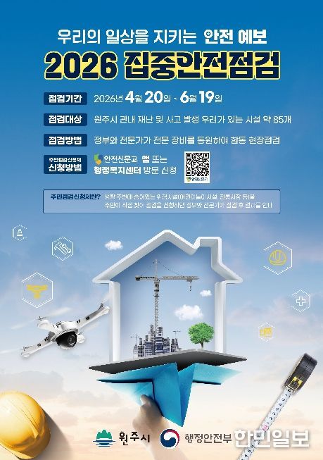 한민일보 서울포커스 임경복 기자 | 원주시는 4월 20일부터 6월 19일까지 61일간 ‘2026년 집중안전점검’을 추진한다.