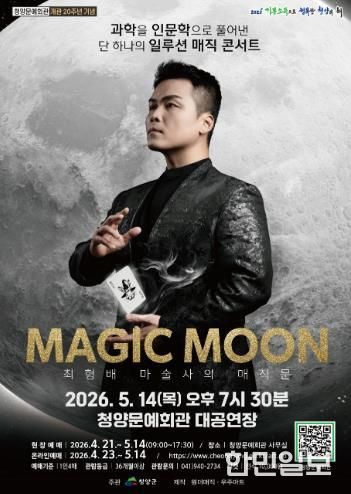 한민일보 서울포커스 임경복 기자 | 청양군이 5월 가정의 달을 맞아 온 가족이 함께 환상적인 마술의 세계를 경험할 수 있는 최형배 마술사의 일루션 매직쇼 ‘매직 문(MAGIC MOON)’을 개최한다.