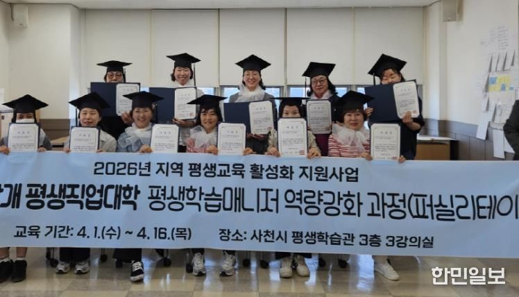 한민일보 서울포커스 김은금 기자 | 사천시 평생학습관은 지역 평생교육 현장에서 활동할 전문 인력을 양성하기 위해 운영한 '평생학습매니저 역량강화 과정'을 성공적으로 마무리했다고 17일 밝혔다.