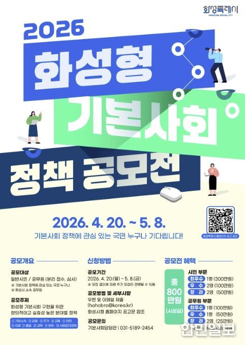 한민일보 서울포커스 진광성 기자 | 화성특례시는 시민 참여 기반을 확대하고, 실효성 있는 기본사회 정책을 발굴하기 위해 '2026년 화성형 기본사회 정책 공모전'을 개최한다고 밝혔다.