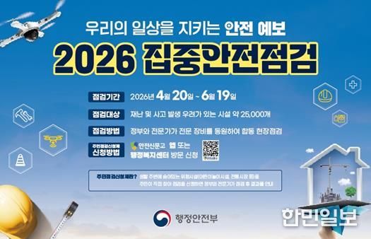 아울러 올해는 주민이 생활 주변의 위험 요인을 직접 제보하고 점검에 참여할 수 있도록 ‘주민점검신청제’를 운영해 주민 참여형 안전관리도 강화할 방침이다.