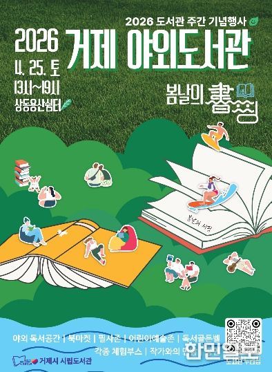 한민일보 서울포커스 김은금 기자 | 거제시 시립도서관은 4월 도서관 주간을 맞아 오는 4월 25일 상동동 용산쉼터에서 시민 참여형 야외 독서문화 행사인 2026 거제 야외도서관 『봄날의 書(서)핑』을 개최한다.