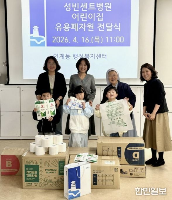 한민일보 서울포커스 진광성 기자 | 수원시 팔달구 인계동은 지난 16일 오전, 성빈센트병원 어린이집으로부터 아이들이 정성껏 모은 유용 생활 폐자원을 전달받았다고 밝혔다.