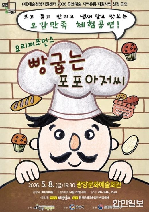 한민일보 서울포커스 임광현 기자 | 광양시는 5월 가정의 달을 맞아 오는 5월 8일 오후 7시 30분 광양문화예술회관 대공연장에서 극단선물의 어린이 참여형 뮤지컬 ‘빵굽는 포포아저씨’를 선보인다고 밝혔다.