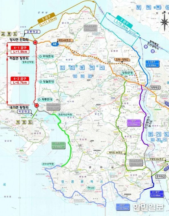이에 강화군은 이달부터 인천광역시와 긴밀히 협업해 자체 예산을 투입, ‘내가면 황청리~하점면 창후리’ 구간에 대한 사전 타당성 조사 용역을 선제적으로 추진하며 사업 정상화의 물꼬를 튼다.
