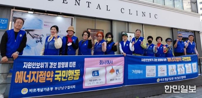 한민일보 서울포커스 임광현 기자 | 바르게살기운동 부산남구협의회(회장 신상진)는 4월 15일 오후 1시, 대연사거리 일대에서 고유가 및 에너지 위기 극복을 위한 ‘에너지 절약 실천 캠페인’을 펼쳤다.