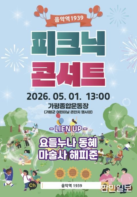 가평군은 오는 5월 1일 오후 1시 가평종합운동장에서 ‘피크닉 콘서트’를 개최한다고 밝혔다. 이번 공연은 ‘제15회 가평군 어린이날 큰잔치’의 축제 분위기를 조성하고, 주민들에게 야외 휴식 공간에서 즐기는 문화 향유 기회를 제공하기 위해 기획됐다.