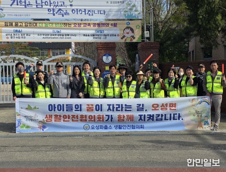 원경연 오성파출소장은 "매번 이른 아침부터 자리를 지켜주시는 회원들 덕분에 관내 교통사고 예방에 큰 힘이 되고 있다”며, “경찰 역시 어린이 보호구역 내 법규 위반 행위를 집중 점검하며 노력하겠다.”고 말했다.