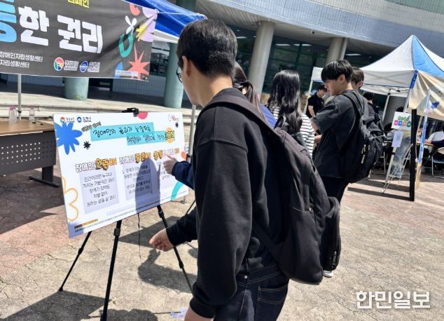 한민일보 서울포커스 김은금 기자 | (재)김해시복지재단 김해시장애인종합복지관(관장 류재복)은 김해장애인복지기관네트워크 합동으로 지난 13일부터 15일까지 3일간 지역 내 대학생들을 대상으로 장애인식개선 캠페인 ‘동정이 아닌, 동등한 권리’을 진행했다.