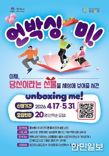 한민일보 서울포커스 황준형 기자 | 평택시 청년지원센터는 4월 17일부터 5월 31일까지 평택시에 거주하는 사회활동이 줄어 사람과의 만남이 거의 없거나 집 밖으로 나오기 힘든 청년의 일상 회복과 사회 참여 촉진을 위해 실시하는 지원사업 '언박싱 미!' 참여자를 모집한다.