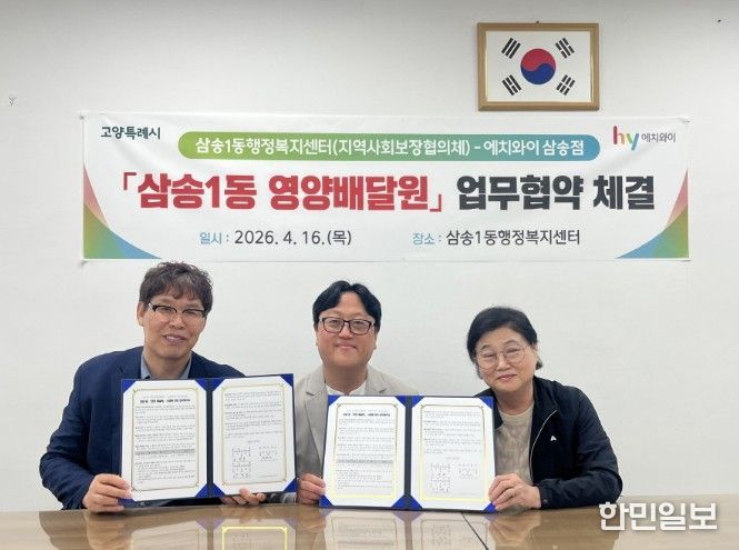 한민일보 서울포커스 김은금 기자 | 고양특례시 삼송1동은 지난 16일 취약계층의 건강과 안부를 동시에 살피는 ‘영양배달원’사업 추진을 위해 지역사회보장협의체와 ㈜에치와이 고양 삼송지점이 업무협약을 체결했다.