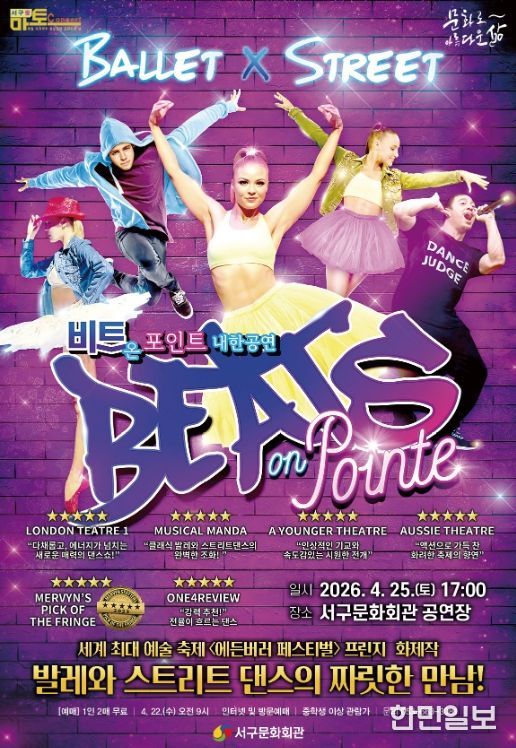 한민일보 서울포커스 임경복 기자 | 서구문화회관은 4월 25일 오후 5시 서구문화회관 공연장에서 4월 서구愛 마토콘서트로 댄스 퍼포먼스'비트 온 포인트'내한 공연을 개최한다.