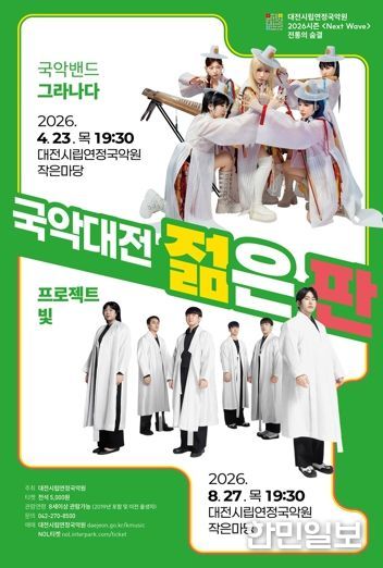 한민일보 서울포커스 유한희 기자 | 대전시립연정국악원은 지역 국악 활성화와 예술 생태계 상생을 위한 지역 국악 활력 프로젝트〈국악대전, 젊은 판〉을 4월 23일 저녁 7시 30분에 국악원 작은마당에서 선보인다.
