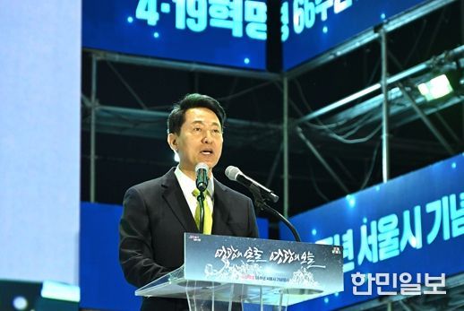 한민일보 서울포커스 국용호 기자 | 오세훈 서울시장은 18일 오후 7시 광화문광장 육조마당에서 열린 ‘4‧19혁명 66주년 서울시 기념행사’에 참석했다.