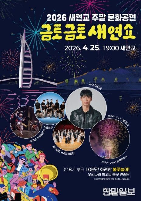한민일보 서울포커스 김다남 기자 | 서귀포시 대표 야간관광이벤트인 ‘금토금토 새연쇼’의 개막공연이 4월 25일 새연교 일원에서 개최된다. 개막일이 바로 앞으로 다가오면서, 시민들과 관광객, 지역상인들의 관심이 높아지고 있다.