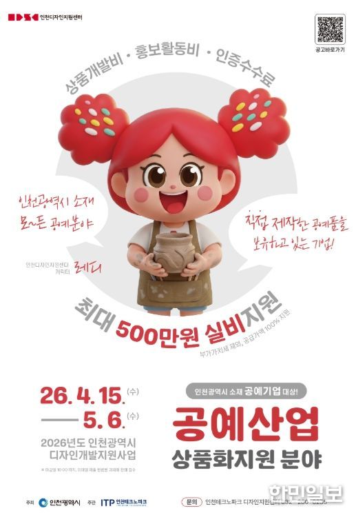 한민일보 서울포커스 유창렬 기자 | 인천테크노파크(인천TP)는 인천 공예기업의 상품 경쟁력 강화를 위해 ‘2026년도 인천광역시 공예산업 상품화 지원사업’ 참여기업을 오는 5월 6일까지 모집한다.