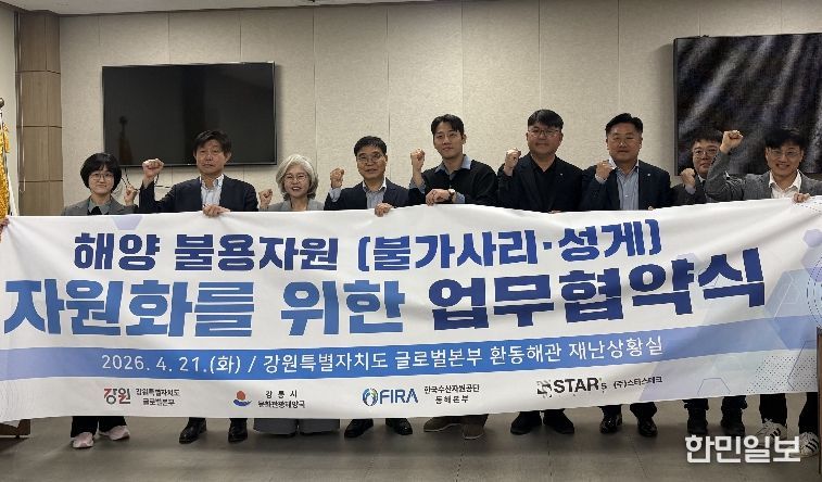 한민일보 서울포커스 임경복 기자 | 강릉시는 21일 강원특별자치도청 글로벌본부 환동해관에서 강원특별자치도, 한국수산자원공단 동해본부, ㈜스타스테크와 함께 ‘해양 불용자원 자원화를 위한 업무협약’을 체결했다고 밝혔다.