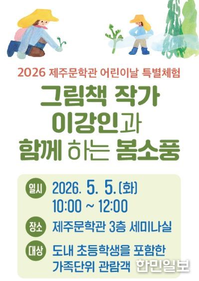 한민일보 서울포커스 임경복 기자 | 제주특별자치도 제주문학관은 오는 5월 5일 어린이날을 맞아 가족 단위 관람객을 위한 특별 체험 프로그램 ‘이강인 작가와 함께하는 봄소풍’을 운영한다.