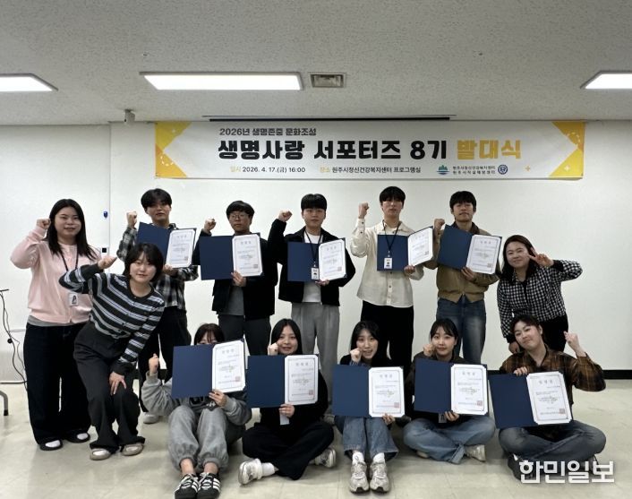 한민일보 서울포커스 임경복 기자 | 원주시자살예방센터는 지난 17일 자살 예방과 생명 존중 문화 확산을 위한 ‘제8기 생명사랑 서포터즈’ 발대식을 개최했다.