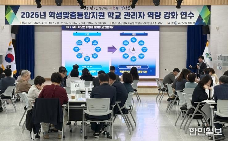 한민일보 서울포커스 임경복 기자 | 경상북도경산교육지원청은 4월 21일 교육지원청 학생교육지원관 4층 강당에서 관내 초․중․고․특수․각종학교 교장을 대상으로 ‘2026년 학생맞춤통합지원 학교 관리자 역량 강화 연수’를 개최했다.