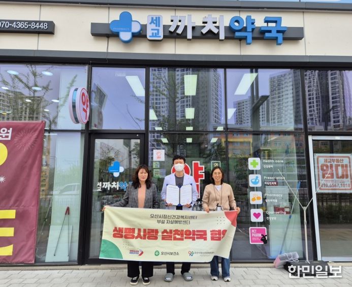 한민일보 서울포커스 임경복 기자 | 오산시정신건강복지센터 부설 자살예방센터는 지역사회 기반 생명존중 문화 확산과 자살예방 체계 강화를 위해 지난 20일과 21일 이틀간 관내 약국 4곳과 ‘생명사랑약국’ 업무협약을 체결했다고 밝혔다.