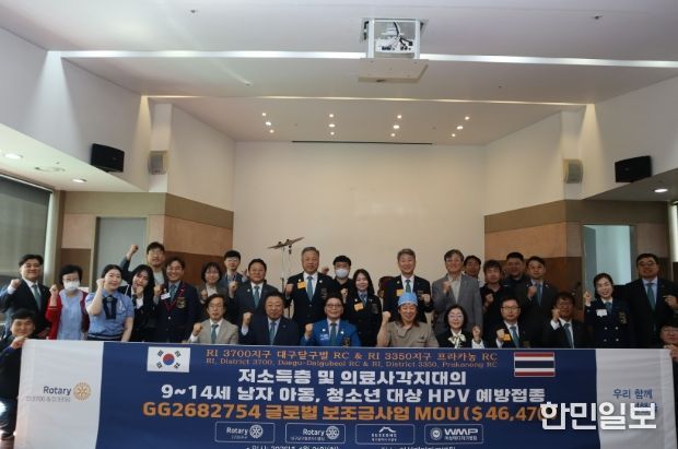 한민일보 서울포커스 임경복 기자 | 대구 수성구는 국제로타리 3700지구(대구달구벌로타리클럽), 여성메디파크병원과 지난 21일 저소득층 및 의료사각지대에 있는 남자 아동·청소년을 대상으로 ‘HPV(사람유두종바이러스) 예방접종 지원을 위한 업무협약’을 체결했다.