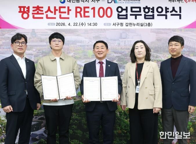 한민일보 서울포커스 임경복 기자 | 대전 서구는 22일 구청 갑천누리실에서 평촌일반산업단지 입주기업인 ㈜닥스엔지니어링과 재생에너지 보급 확산을 위한 ‘RE100 업무협약’을 체결했다.