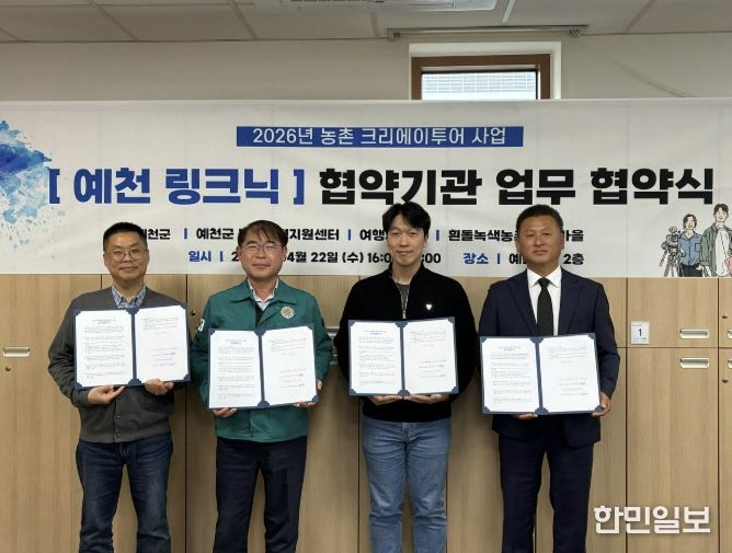 한민일보 서울포커스 임경복 기자 | 예천군은 지난 22일 오후 4시, ‘농촌 크리에이투어’ 사업의 체계적인 추진과 민·관 협력 강화를 위한 민간 협의체를 구성하고 업무 협약을 체결했다고 밝혔다.