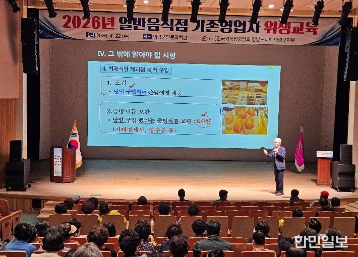 한민일보 서울포커스 김은금 기자 | 의령군은 22일 의령군민문화회관에서 일반음식점 기존 영업자 300여 명을 대상으로 위생교육을 실시했다고 밝혔다.