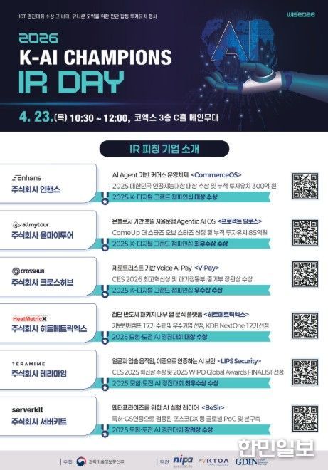 한민일보 서울포커스 임철현 기자 | 과학기술정보통신부는 정보통신산업진흥원, 한국통신사업자연합회와 함께 4월 23일 서울 코엑스에서 ‘2026 K-AI Champions IR Day’을 개최했다고 밝혔다.