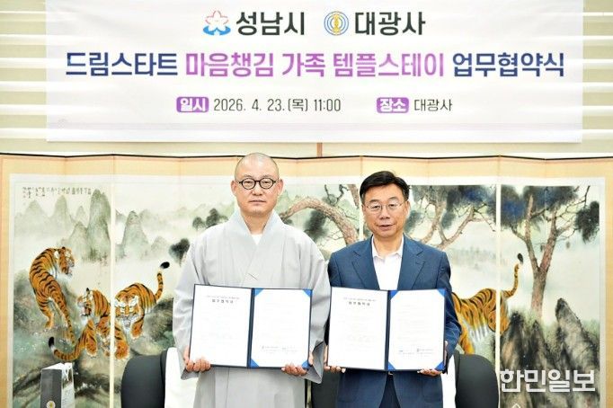 시는 이날 오전 11시 30분 분당구 구미동 불곡산 자락에 있는 대광사 지관전 접견실에서 신상진 성남시장과 도웅 대광사 주지스님 등이 참석한 가운데 ‘드림스타트 가족 마음챙김 템플스테이 추진에 관한 업무협약’을 했다.