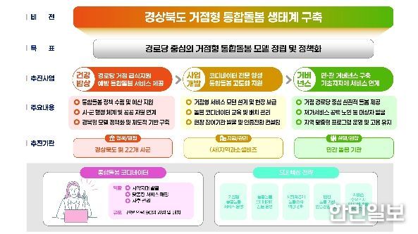 경로당 중심 통합돌봄 사업은 초고령사회에 진입한 경북도의 돌봄 사각지대를 해소하고, 시・군간 돌봄서비스 양극화 및 돌봄 격차의 구조적 문제를 해결하기 위한 사업이다.
