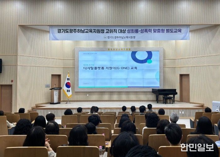 한민일보 서울포커스 임경복 기자 | 경기도광주하남교육지원청은 4월23일‘경기교육 디지털플랫폼 지원이(G-ONE) 역량강화를 위한 교육’을 미래교육 현장을 이끄는 교장·교감·행정실장을 대상으로 실시하여 현장업무에 AI기반 서비스를 적용한 교직원의 업무 효율성을 높인다.