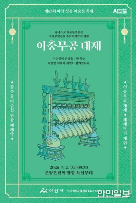 한민일보 서울포커스 임경복 기자 | 아산시가 충무공 이순신 탄신 제481주년을 기념해 오는 5월 2일 온양온천역 광장에서 이순신 장군의 안녕을 기원하는 다양한 제례와 체험을 제공하는 ‘이충무공 대제’ 행사를 개최한다.