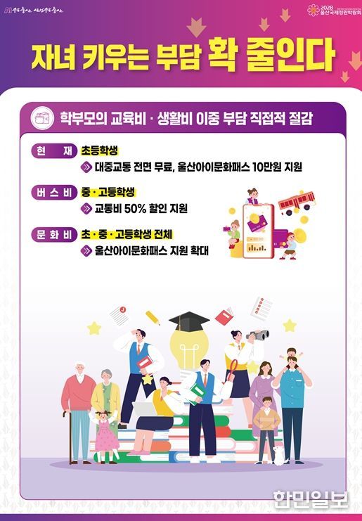 한민일보 서울포커스 임경복 기자 | 울산시가 초·중·고 자녀를 둔 학부모의 교육비 부담을 덜기 위해 ‘울산형 시민체감 교육지원 사업’을 대폭 확대한다.
