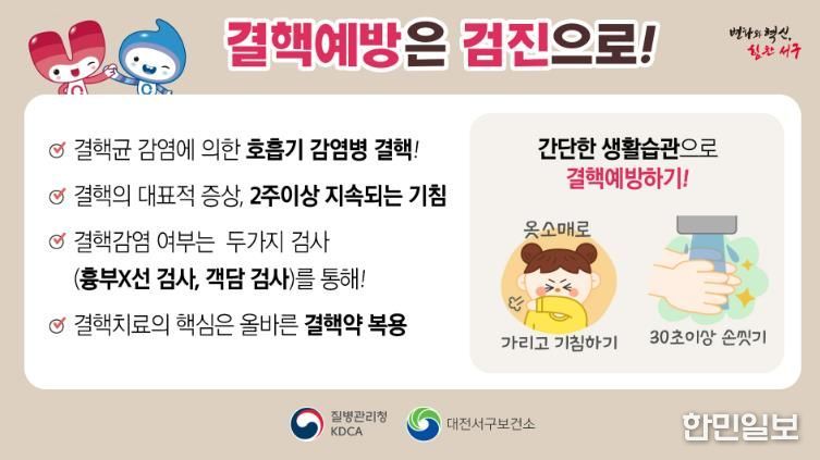 한민일보 서울포커스 임경복 기자 | 대전 서구보건소는 관내 주간보호센터 이용자 및 주민들을 대상으로 ‘찾아가는 결핵 예방 교육’을 추진한다고 24일 밝혔다.