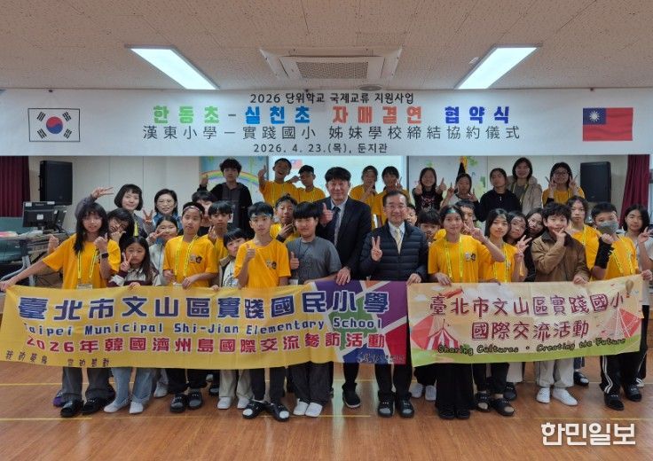 한민일보 서울포커스 임경복 기자 | 제주도교육청 한동초등학교는 23일과 24일 이틀간 대만 실천초등학교 방문단을 초청해 ‘2026학년도 한동 교육가족 한마당 축제’와 ‘자매결연학교 교류 행사’를 개최했다.
