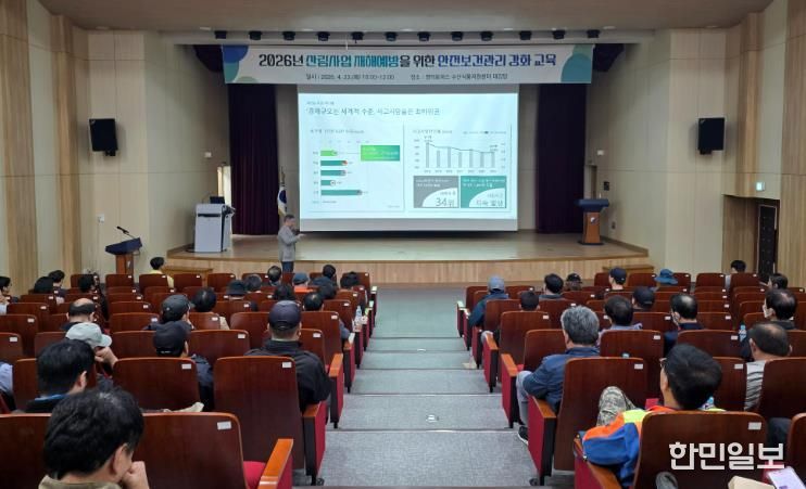 한민일보 서울포커스 임경복 기자 | 영덕군은 산림 현장의 안전사고를 예방하고 근로자의 보건 안전을 강화하기 위해 지난 23일 영덕 로하스 수산식품지원센터에서 ‘산림사업 재해예방 안전보건 관리 강화교육’을 시행했다.