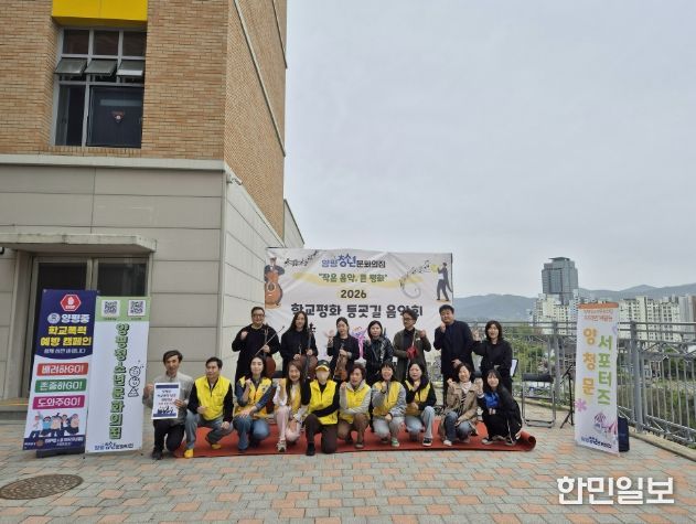 한민일보 서울포커스 차재만 기자 | 양평청소년문화의집은 지난 22일 양평중학교에서 지역 연계 사업 ‘양청문서포터즈’를 통해 ‘학교평화 등굣길 음악회’를 운영하고 학교폭력 예방 캠페인을 진행했다.