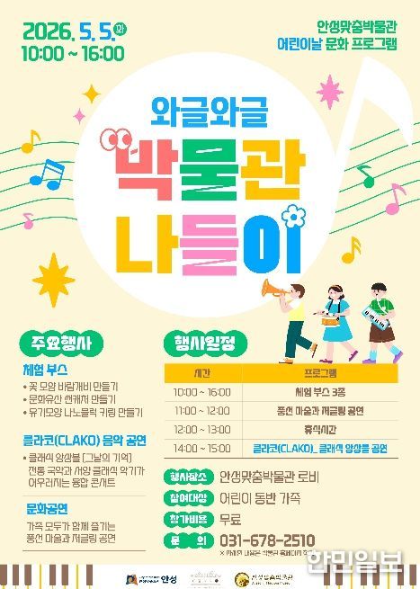 한민일보 서울포커스 임경복 기자 | 안성맞춤박물관은 오는 5월 5일 어린이날을 맞아, 온 가족이 함께 즐길 수 있는 문화 프로그램 ‘와글와글 박물관 나들이’를 개최한다고 밝혔다.
