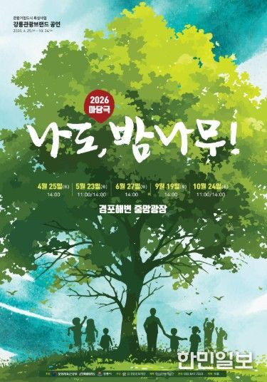 특히, 「마당극 나도 밤나무」는 25일(토) 오후 2시 경포해변 중앙광장에서 올해의 첫 포문을 연다. 푸른 바다를 배경으로 진행되는 이번 무대는 단순한 관람을 넘어, 관광객과 시민이 함께 호흡하고 즐길 수 있는 참여형 열린 공연 형식으로 기획돼 특별한 추억을 선사할 것으로 기대된다.