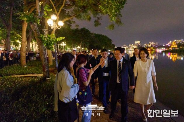 이어 이 대통령 부부는 인근 식당으로 자리를 옮겨 쌀국수와 볶음밥으로 저녁 식사를 함께했다. 이후 호안끼엠 호수 일대를 산책하며 베트남에서의 소중한 추억을 쌓았으며, 산책을 마친 뒤에는 베트남 국민들에게 다시 한번 손을 흔들어 인사를 전하며 일정을 마무리했다.