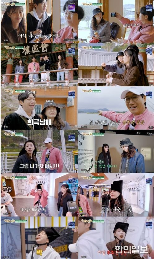 멤버들의 투닥투닥 케미는 장소를 가리지 않았다. 경천대 벚꽃 명소에서 이미주가 사랑을 쟁취하려 ‘벚꽃잎 추격자’로 변신한 사이, 전소민과 이상엽은 벚꽃잎을 눈물처럼 붙이고 ‘메소드 연기’를 펼쳤다. 그 모습에 이미주가 “아 그거 하지 말지”라며 정색하는 모습은 현장의 웃음 버튼을 제대로 눌렀다.