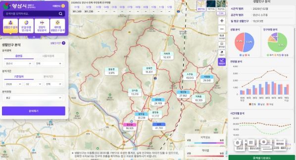 양산시 관계자는 “생활인구 분석 서비스를 통해 시민이 직접 지역 인구 흐름을 확인할 수 있는 기반을 마련했다.”며 “앞으로도 데이터 기반 행정을 지속 확대해 시민이 체감할 수 있는 정책을 추진해 나가겠다.”고 말했다.