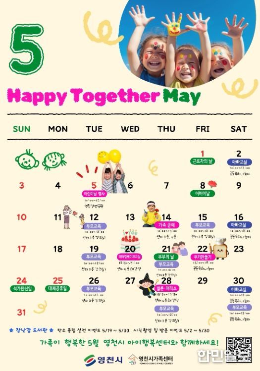 한민일보 서울포커스 김봉순 기자 | 영천시는 5월 가정의 달을 맞아, 아이와 가족이 함께 즐길 수 있는 ‘아이행복 통합 페스타’를 운영한다고 28일 밝혔다.